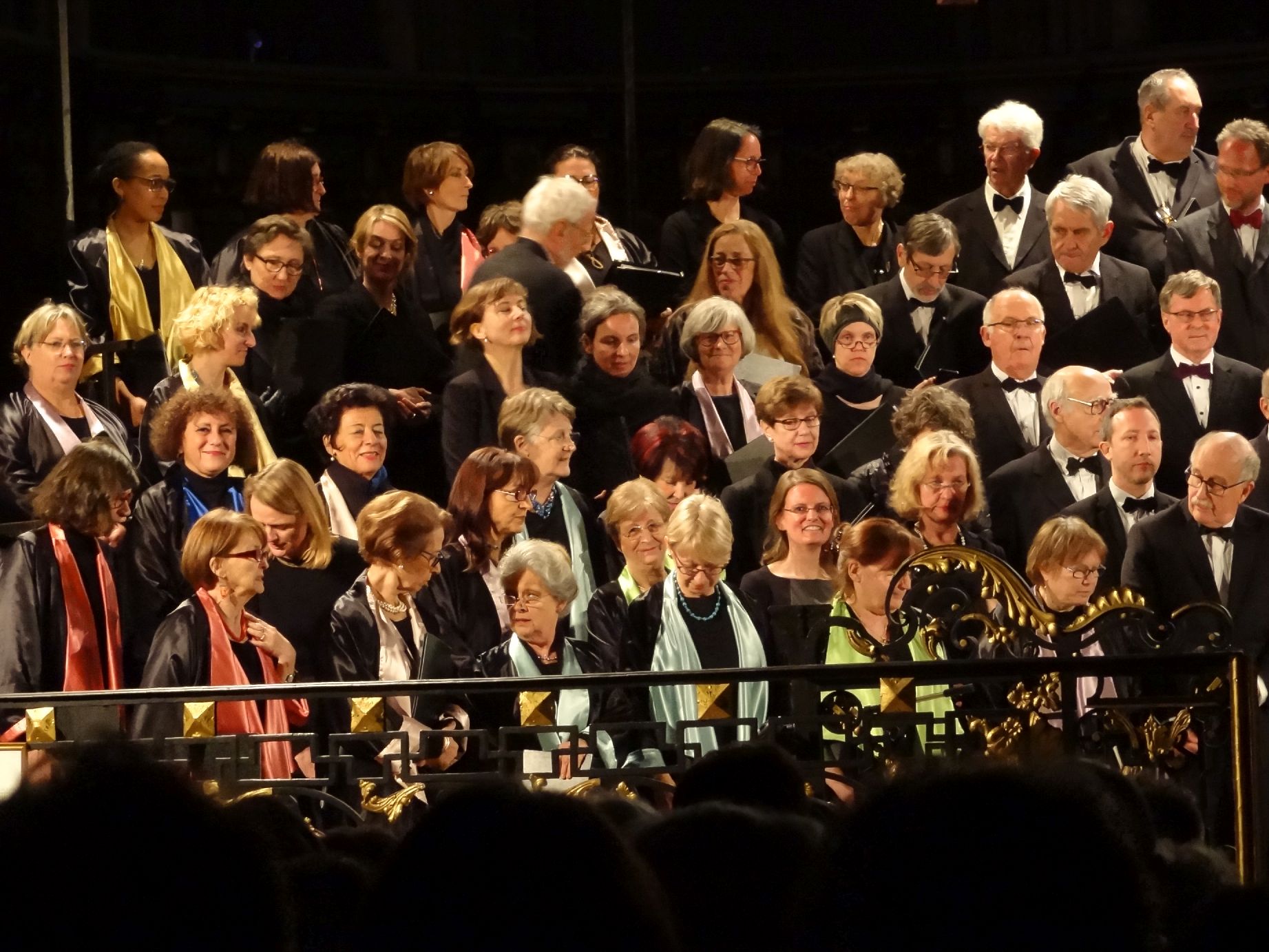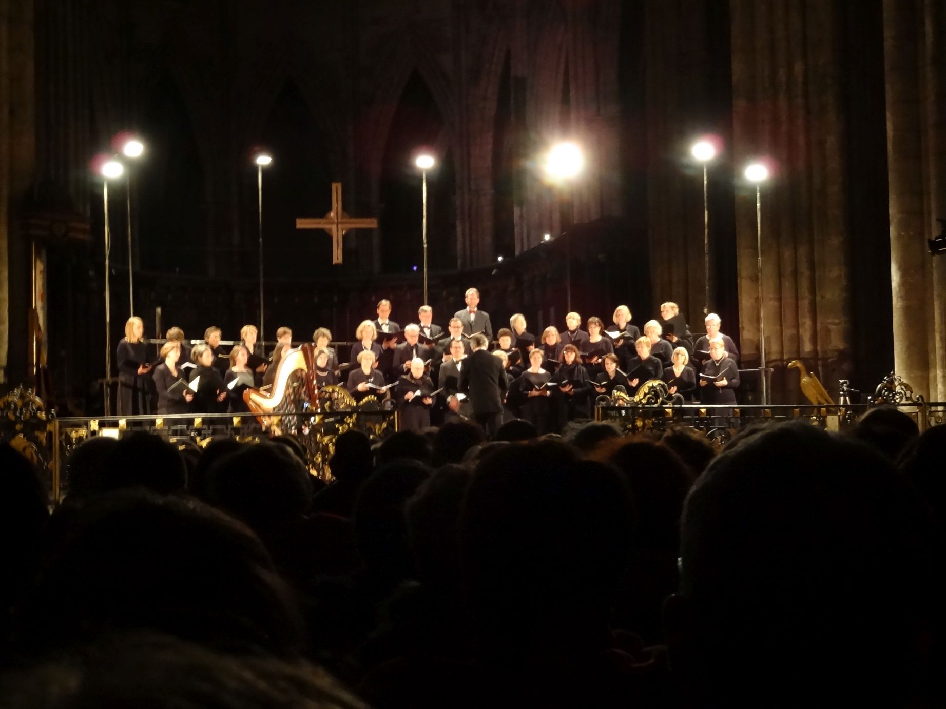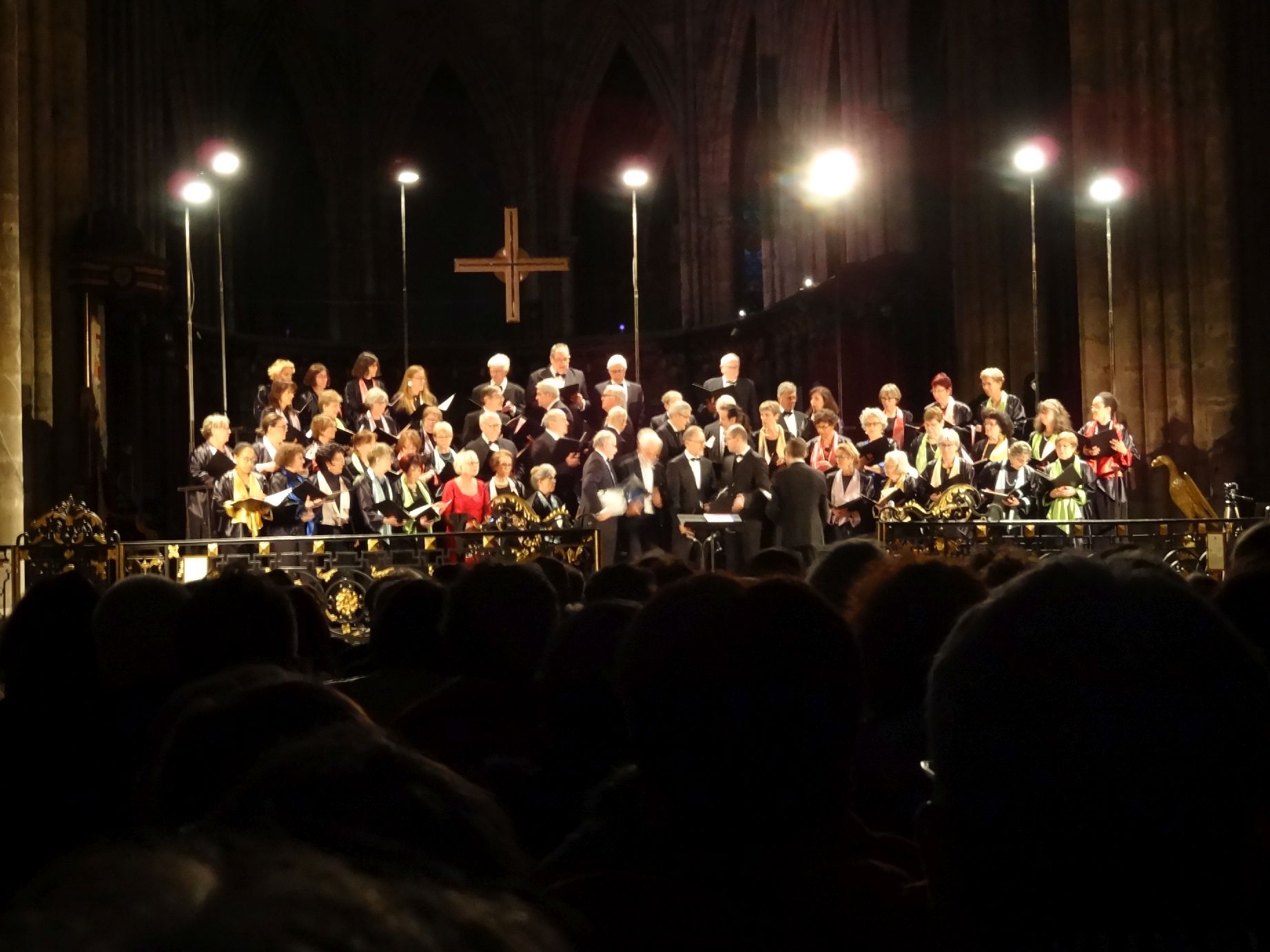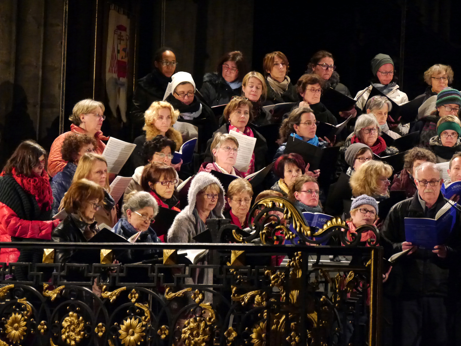 Am nächsten Tag fand die Vereinigung der beiden Chöre zu einem Ensemble statt. Das Zusammentreffen in der Kathedrale war sehr herzlich – immer abwechselnd stellten wir uns auf und probten unter der Leitung von Eliane Lavail, die uns souverän durch die Unwägbarkeiten der Akustik in der Kathedrale führte. Auch die Generalprobe unserer mitgebrachten Stücke war an diesem langen Abend nach der Gewöhnung an die gewaltige Akustik erfolgreich.