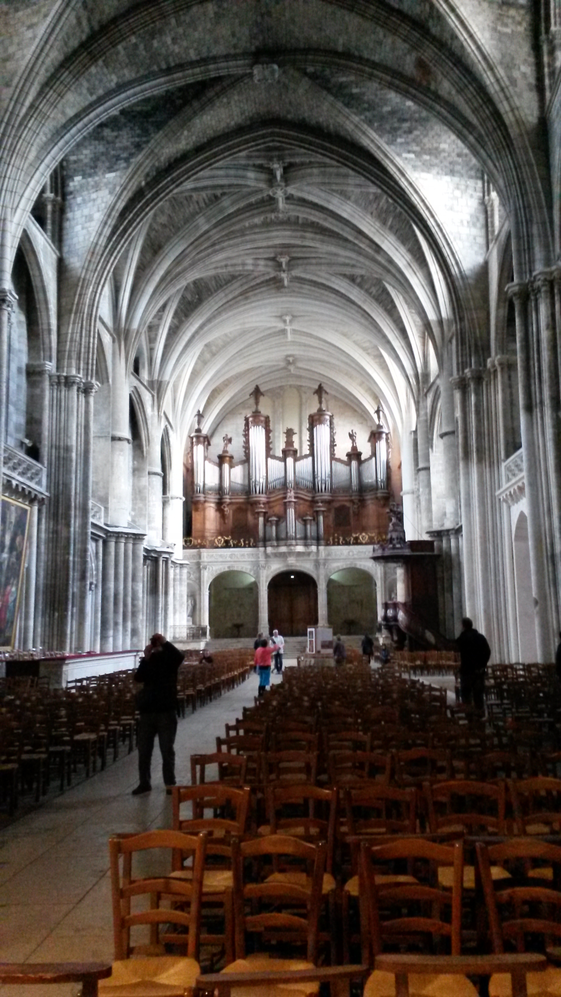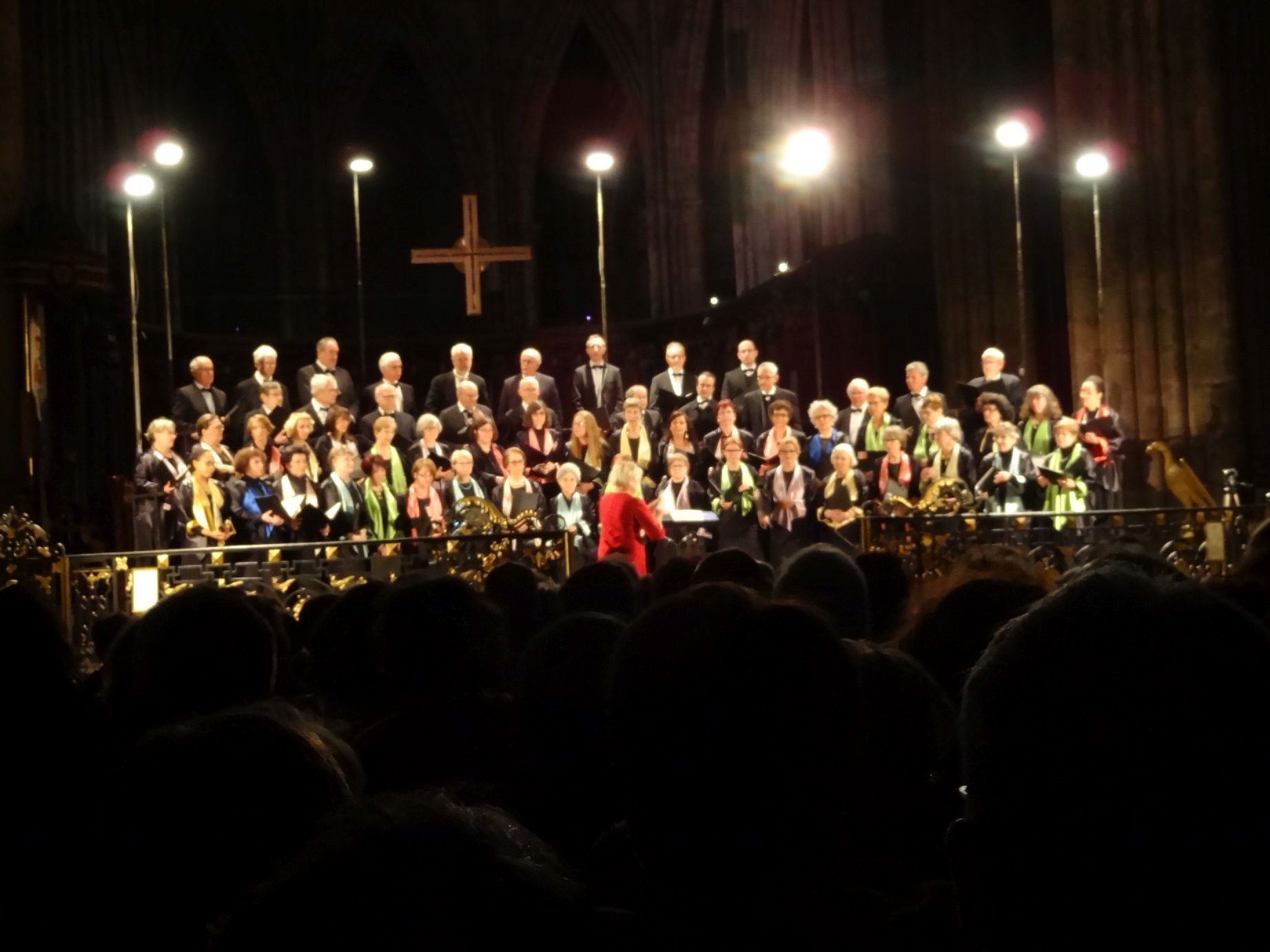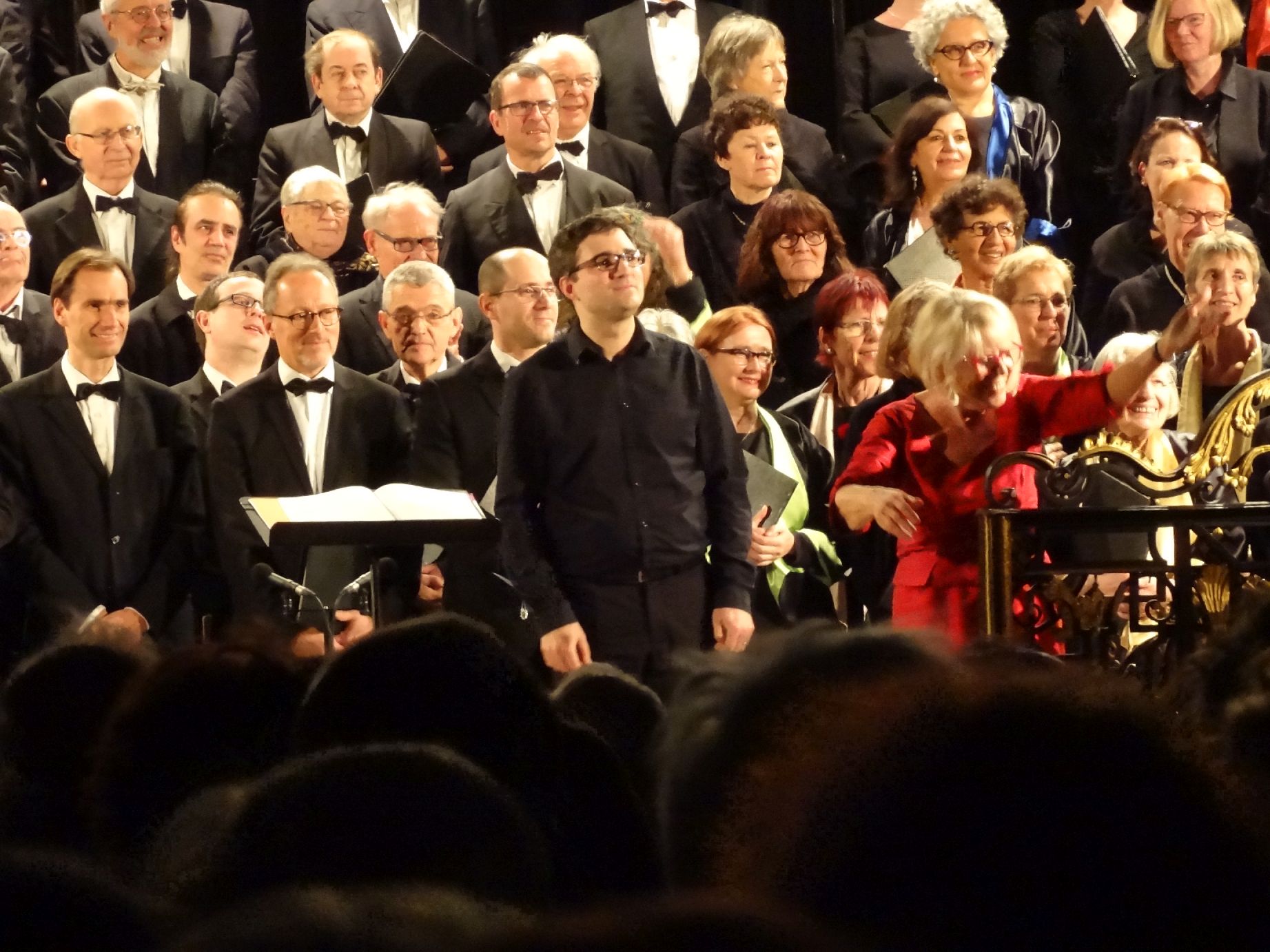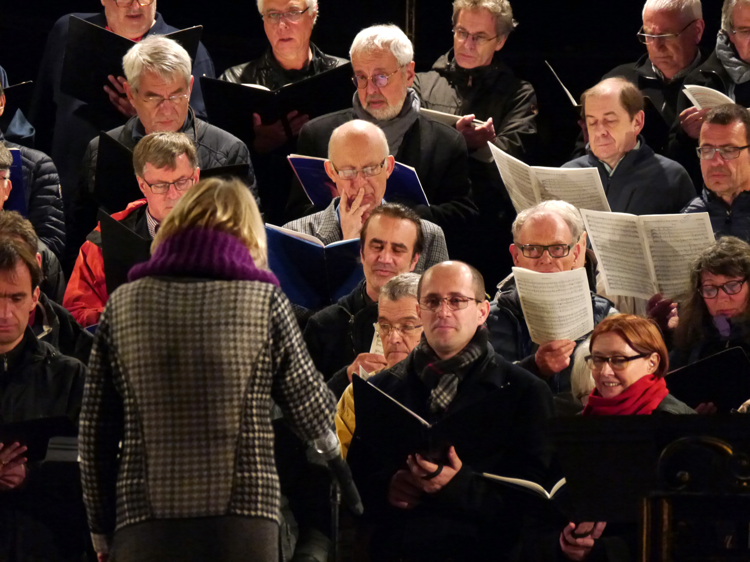 Am nächsten Tag fand die Vereinigung der beiden Chöre zu einem Ensemble statt. Das Zusammentreffen in der Kathedrale war sehr herzlich – immer abwechselnd stellten wir uns auf und probten unter der Leitung von Eliane Lavail, die uns souverän durch die Unwägbarkeiten der Akustik in der Kathedrale führte. Auch die Generalprobe unserer mitgebrachten Stücke war an diesem langen Abend nach der Gewöhnung an die gewaltige Akustik erfolgreich.