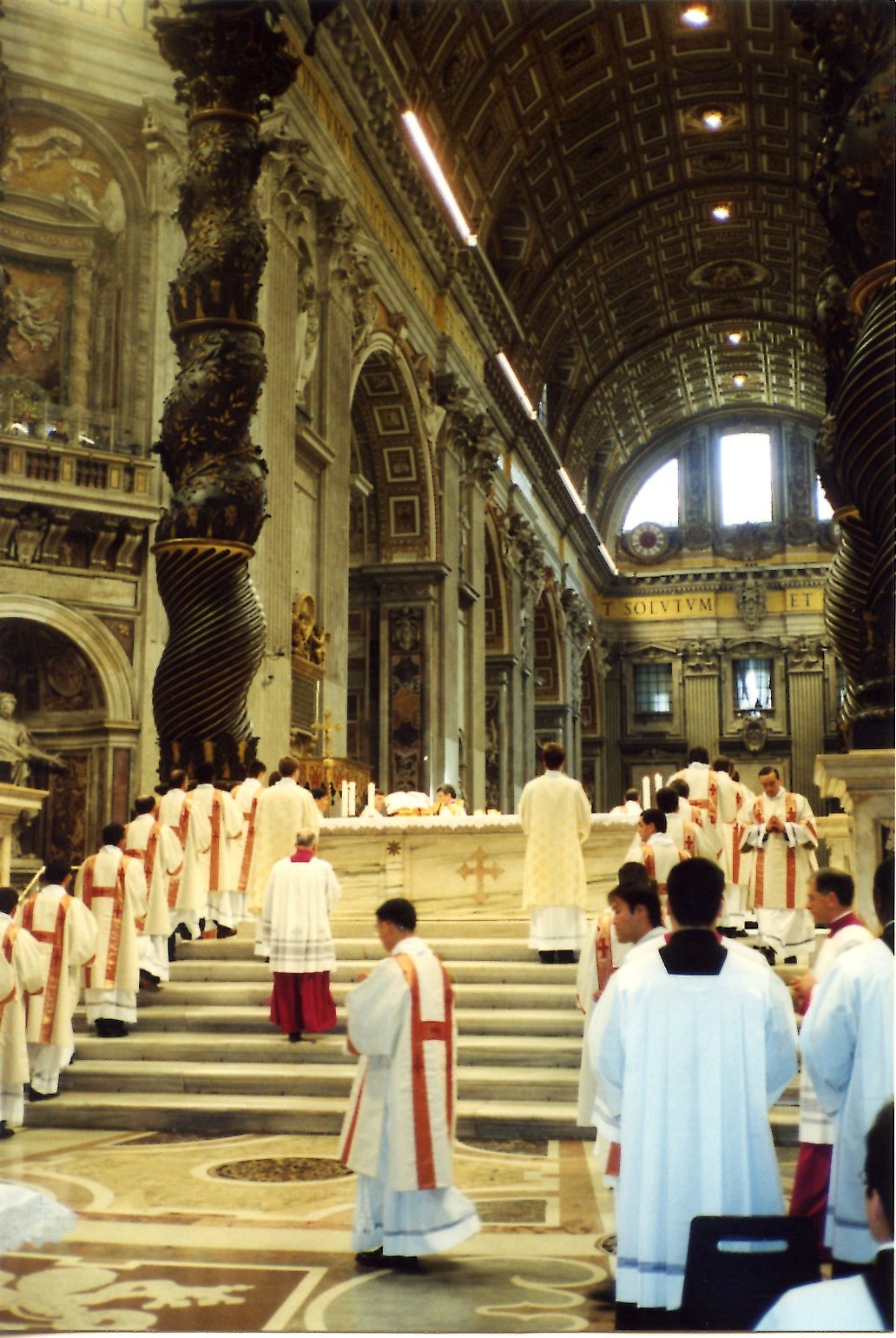 Noch einmal hatte der Chor einen Auftritt, dieses Mal eingebunden in die Liturgie des Gründonnerstags, und zwar im Petersdom, im Wechselgesang mit dem Papst. Die Dimension des größten katholischen Gotteshauses der Welt, die Anwesenheit aller Bischöfe und Kardinäle, nicht zuletzt das gebrechliche, aber willensstarke Oberhaupt der Kirche, Johannes Paul II., verfehlten nicht seinen Eindruck auf alle Beteiligten.