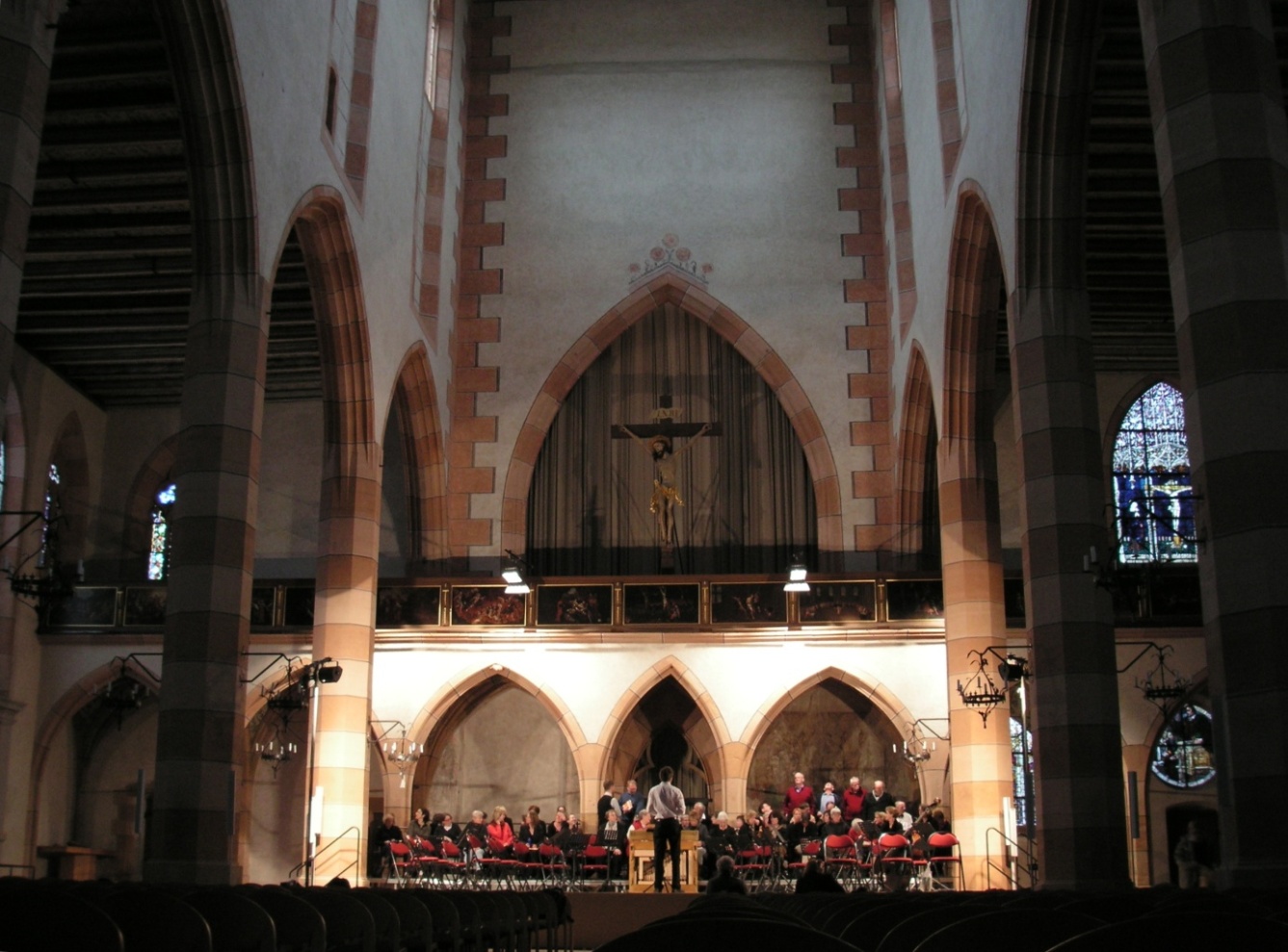 Das Konzert mit Händels Werk fand in der durch seine Kunstschätze, den prächtigen Lettner, die Silbermannorgel, aber auch den Kreuzgang sehr sehenswerten Kirche St. Pierre-le-Jeune vor zahlreichem Publikum statt.